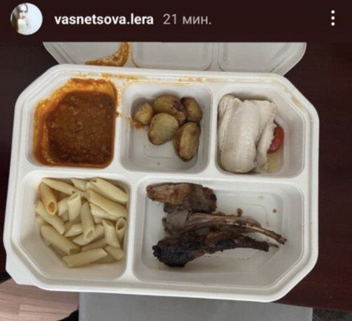 ワスネトコワは隔離先で用意された食事の写真をインスタグラム公開。プレーンのパスタやジャガイモ、小さな骨付き肉のようなものが少量、トレーに乗せられている。AP通信は「五輪チームたちの隔離ホテルへの懸念が高まる」との見出しで記事を掲載した。