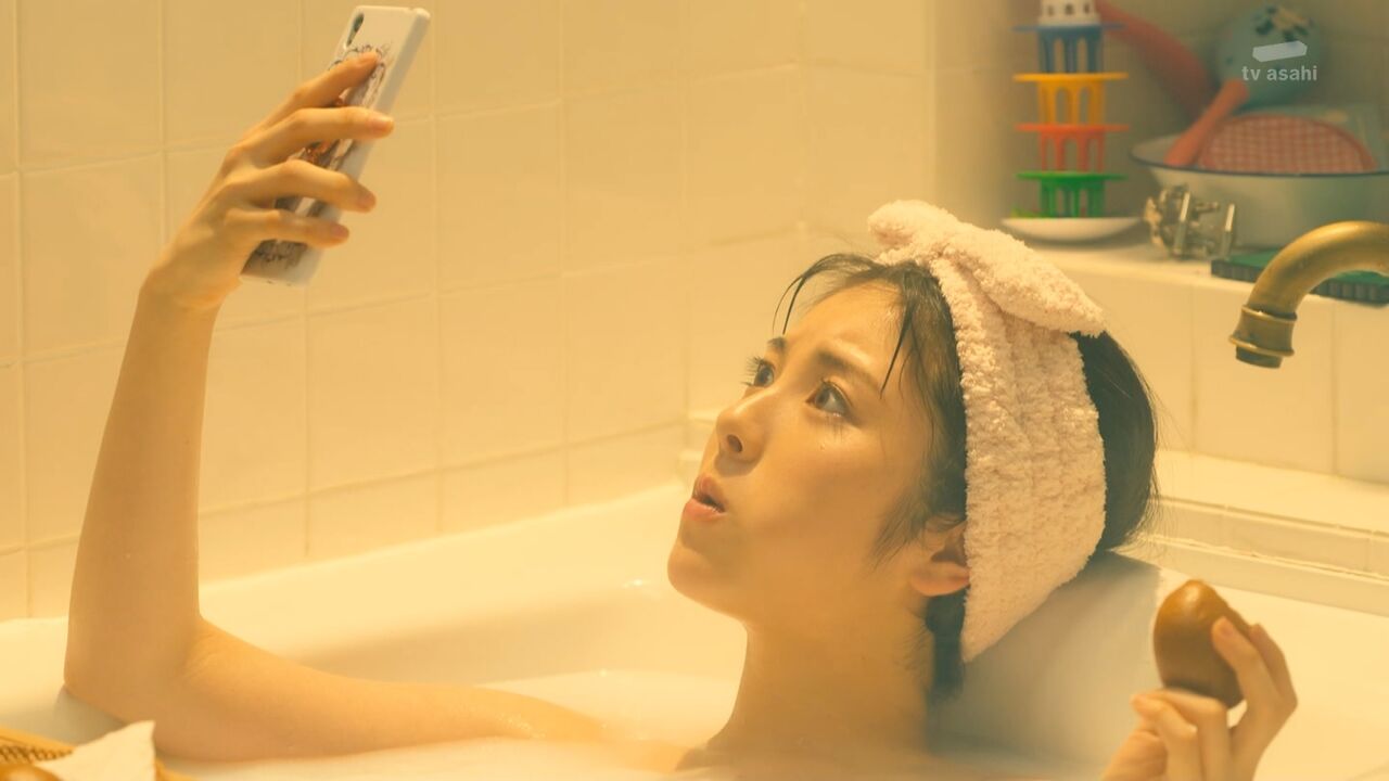 第3話では、お風呂に入っている時に知り合いの刑事から電話があり、マッパのまま立ち上がるというキワドイ場面を放送。
