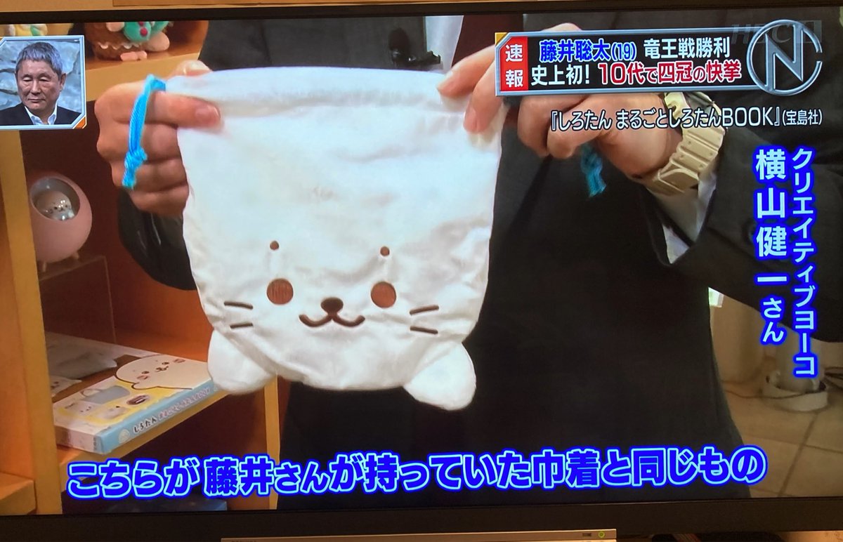 ――対局で使用している「しろたん」(アザラシのキャラクター)巾着袋が話題。中身は?