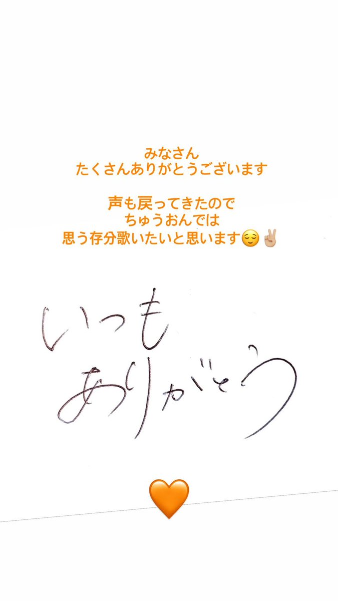 本人のコメントも発表され、「やっと9人揃ったところでご心配、ご迷惑をおかけしてしまい申し訳ありません」とファンに謝罪し、「年内の活動再開を目指しておりますので今は『ちゅうおん』まで目の前のことを全力で頑張ります! そしてわがままになってしまいますが少しの間待っていてくれたら嬉しいです」と呼びかけた。